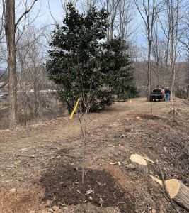 Volunteers from Master Gardeners, Clayton Rotary Club, and Chattooga Conservancy joined to plant six native trees (Redbud, Dogwood, and Sugar Maple) along an area of the park’s upper embankments bordering Highway 441. The Master Gardeners continue to lead the ongoing work of cleaning up the park’s understory; volunteers helped in this effort by picking up litter and removing invasives.